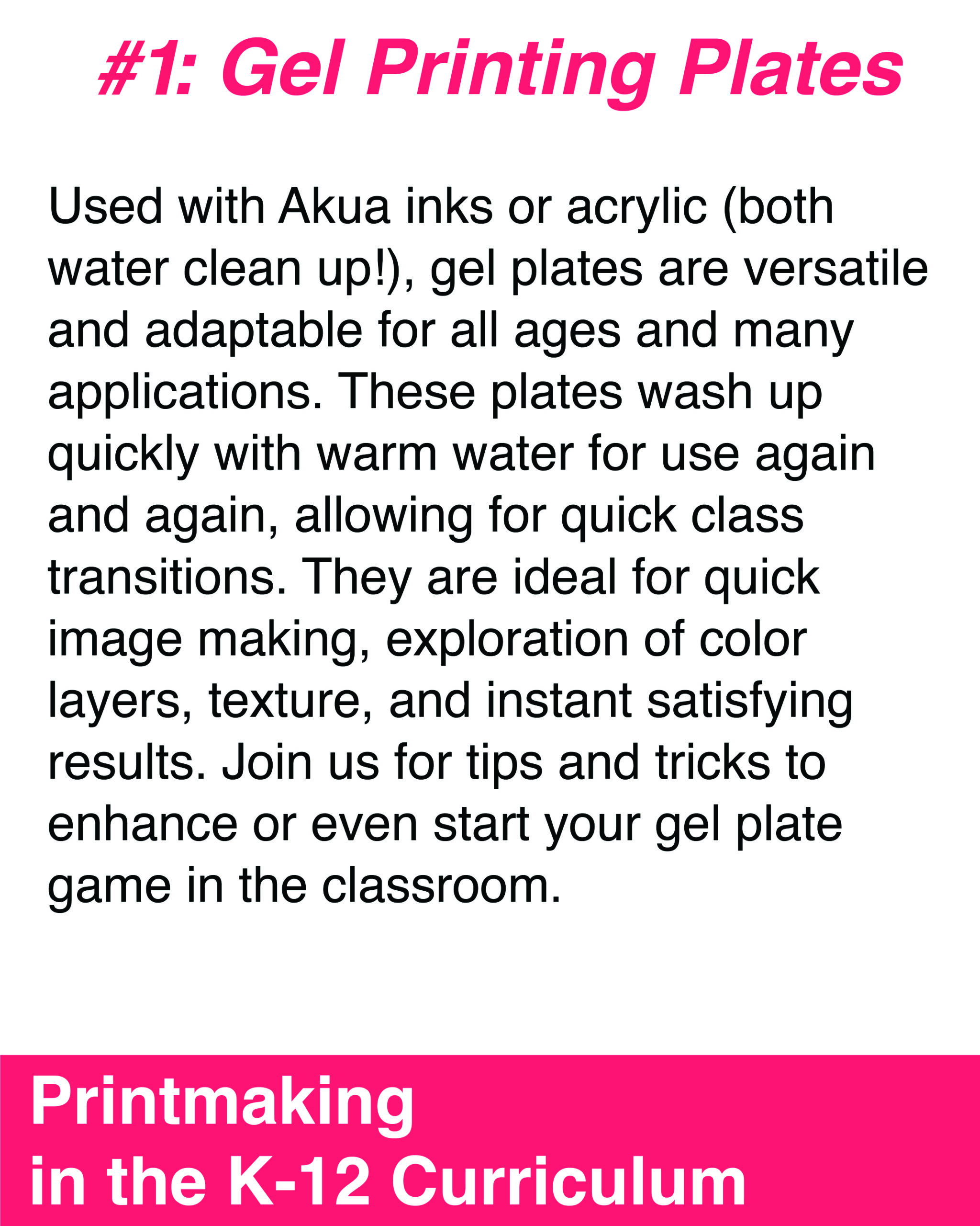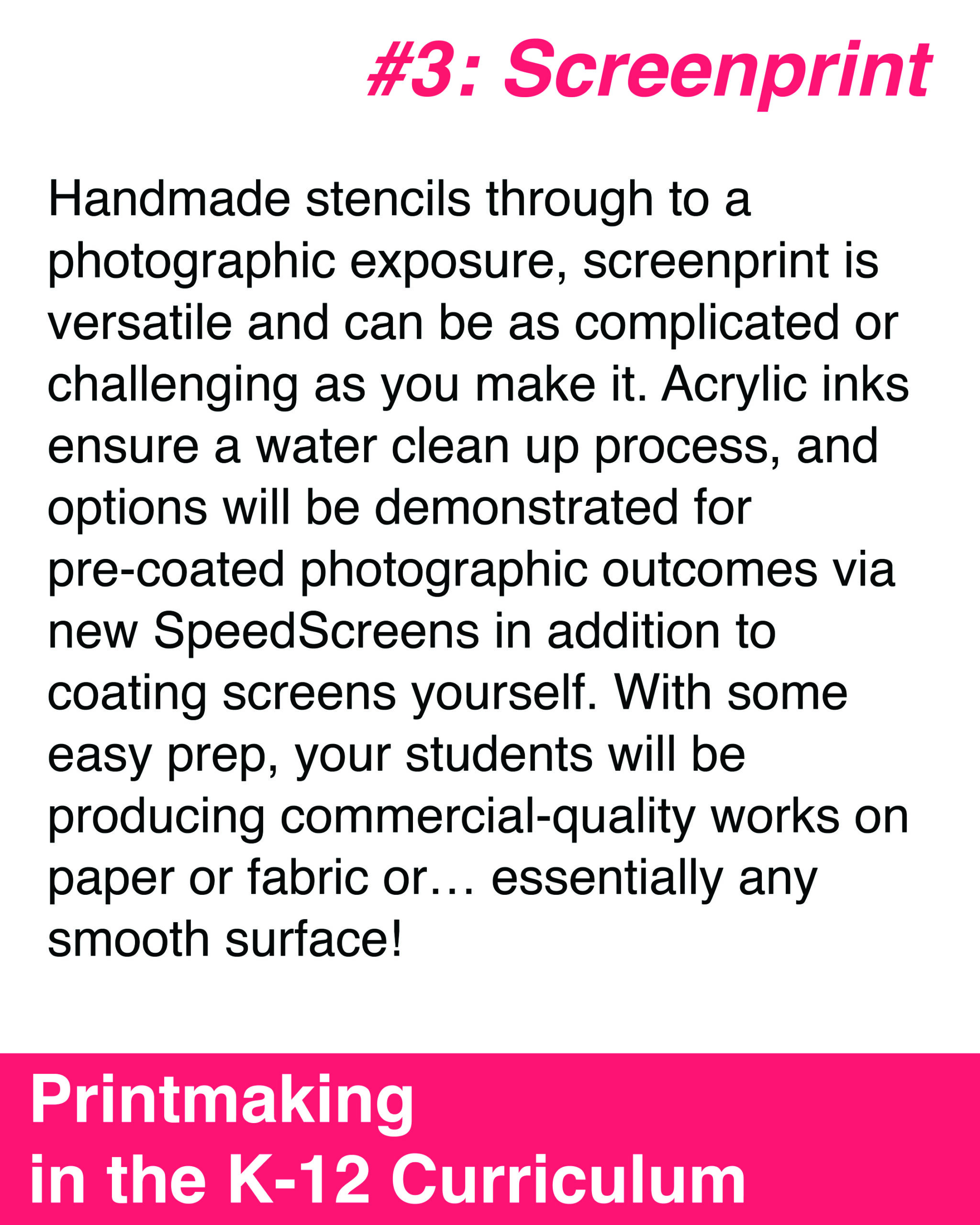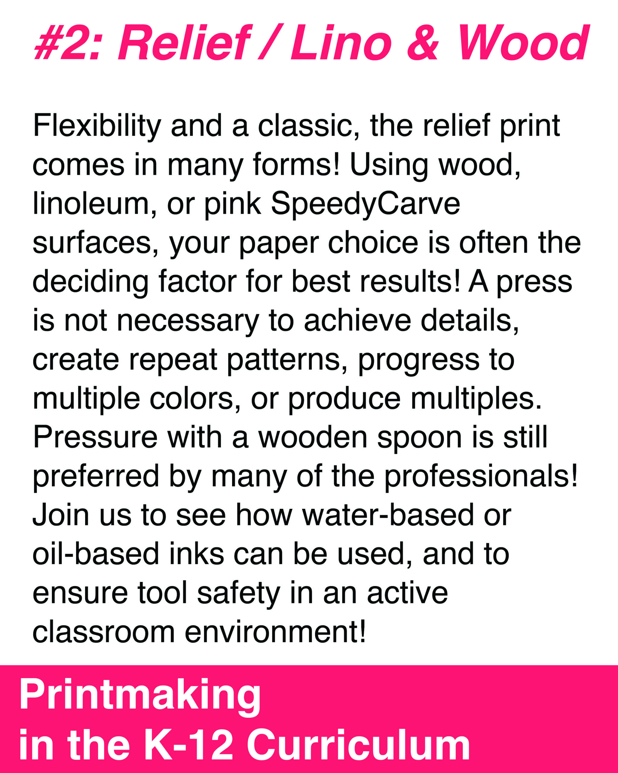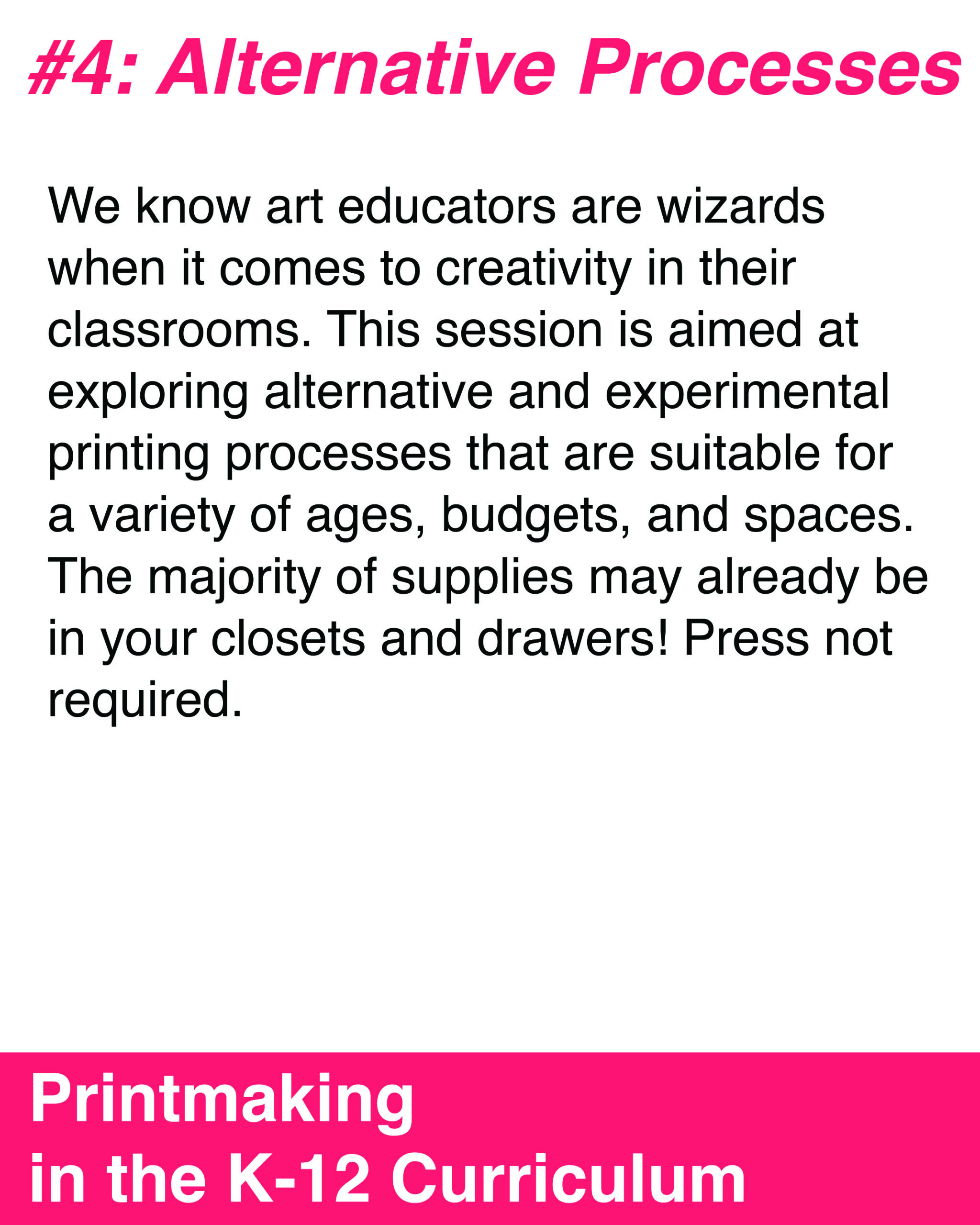 These 2-hour sessions are designed to empower teachers as artists by building confidence in a variety of print-based processes, while emphasizing flexibility so educators can easily adapt techniques and lessons to fit their unique classroom needs, resources, and teaching goals.